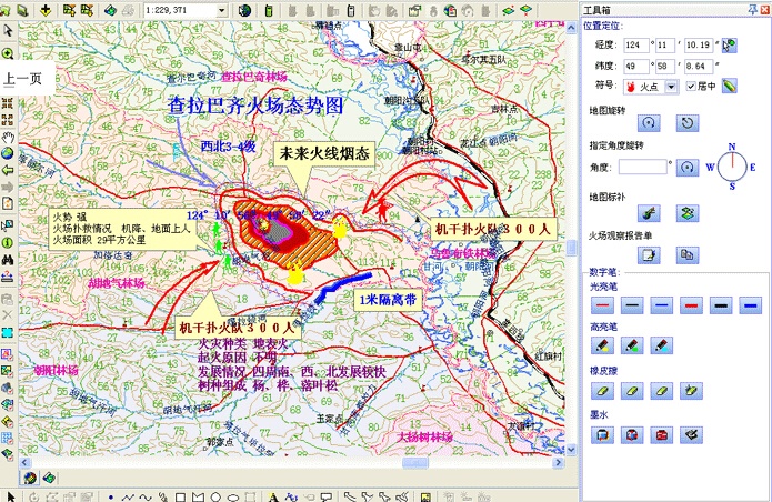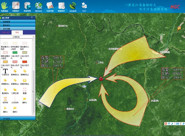 偵查標(biāo)繪系統(tǒng)可采集GPS信號,實現(xiàn)了在電子地圖上進(jìn)行實時領(lǐng)航。觀察員可隨時在屏幕上看到自己的位置、坐標(biāo)、航跡、 航線、航向、高度、速度、偏航距離等領(lǐng)航信息,又可直觀地在電子地圖上看到所在位置周圍的地物、地貌信息。標(biāo)繪系統(tǒng)方便簡單的操作步驟,更適合實戰(zhàn)應(yīng)用。同樣,救援隊伍亦可隨時知道自己的準(zhǔn)確地理位置,并且指揮員可以利用GPRS和CDMA無線網(wǎng)絡(luò),將標(biāo)繪好的火場態(tài)勢圖和文字形式的火情報告及時上傳到上級應(yīng)急指揮部門。