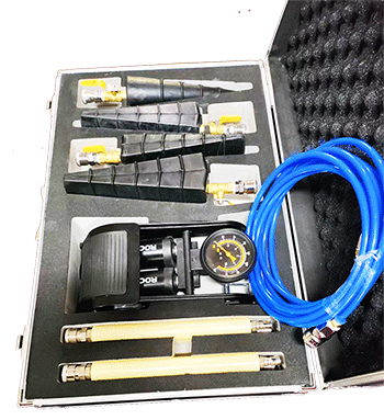 2.安全設備放置在手提箱內,配有安全操縱儀,放氣閥與腳踏氣泵。