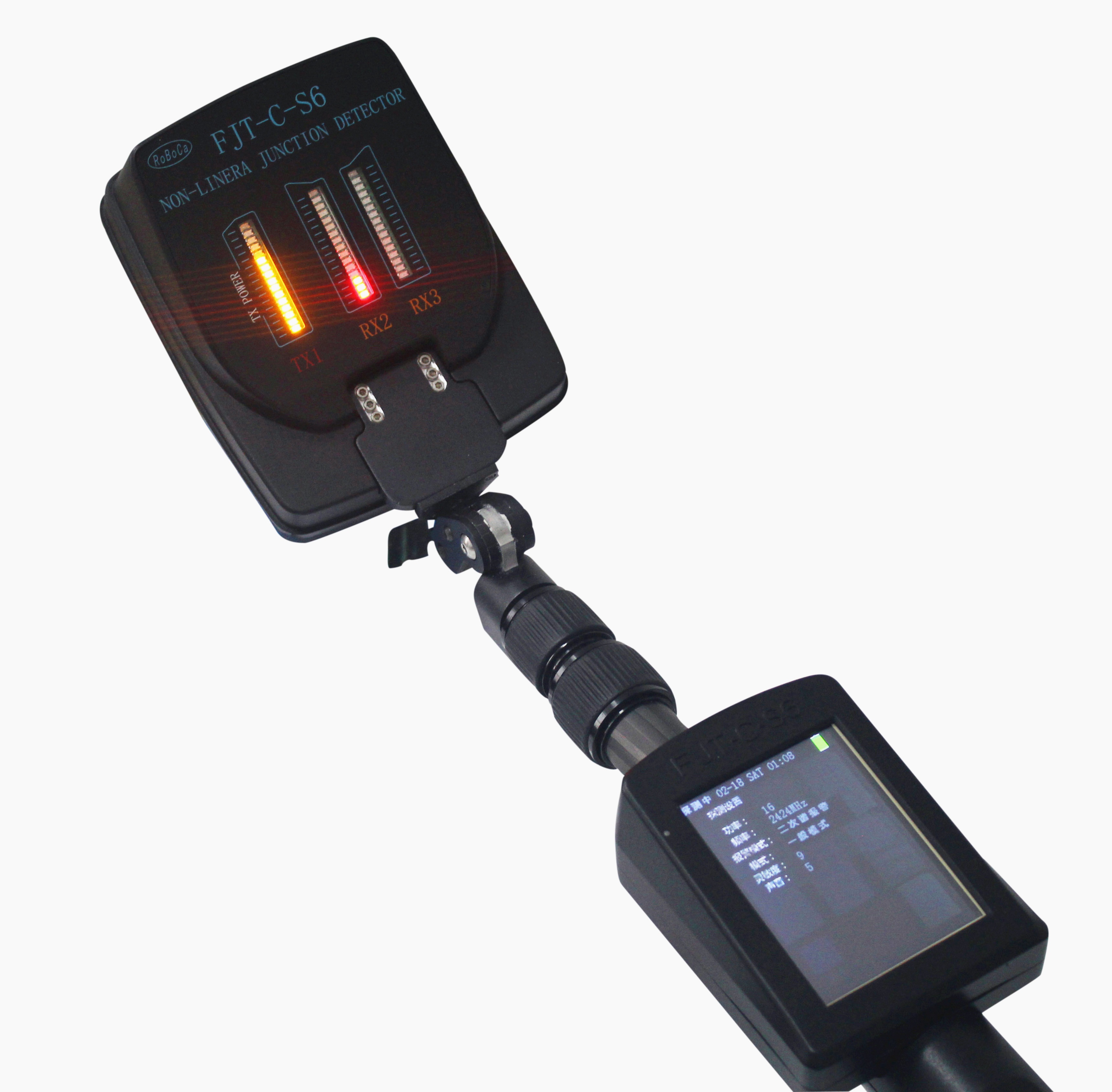 FJT-C-S6非線性節點探測儀是一款重要的可快速可靠探測半導體和金屬物體裝置的設備,專用于特種部門的工作人員檢查房間屋室內等空間,用來排查可疑目標及未知的封裝包裹或物體內的半導體和金屬物體裝置(炸彈起爆器或者竊聽器等)。