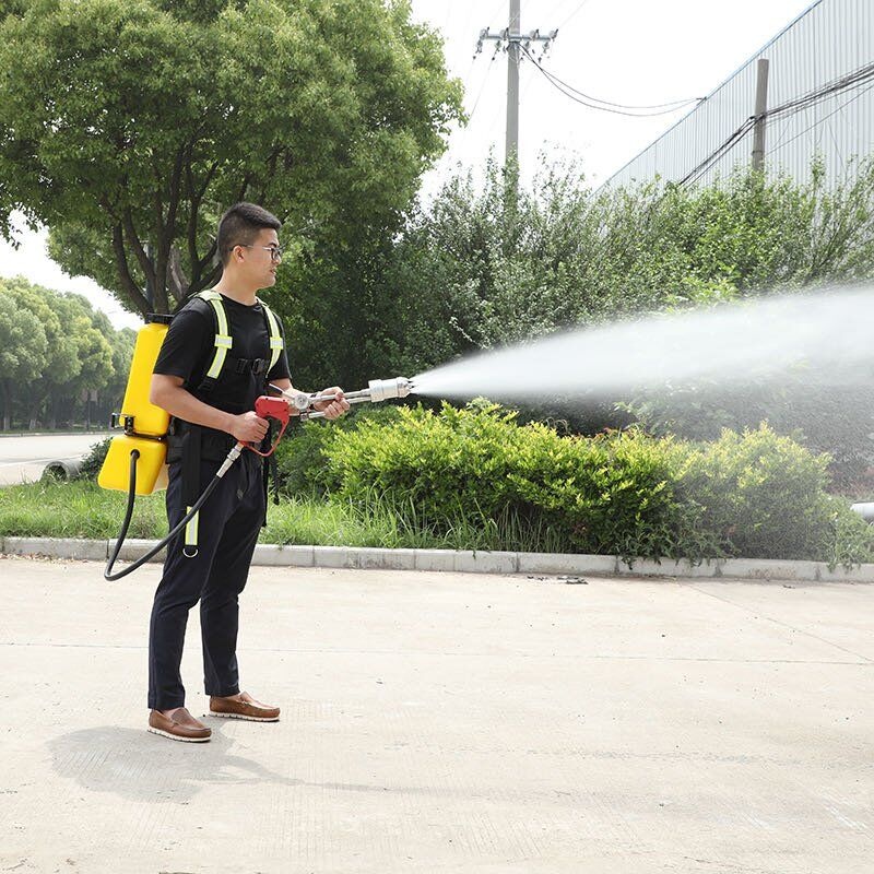 本產品是電機驅動水泵產生一定壓力的水流,通過對水流壓力和流量的控制后,再通過可產生細水霧的專用噴槍噴出進行滅火的裝置。改裝置設置了限壓限流、缺水保護、欠壓提醒等多種保護。系統沒有壓力容器。徹底解決了使用壓力容器的安全隱患。
