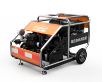 水泵為進口3缸液壓柱塞隔膜泵。泵體采用高強鋁合金壓鑄工藝一次成型,保證水泵在高壓工作中不會出現泵體斷裂、螺絲脫落等現象。連桿和偏心軸采用鋁基合金,同時進行氮化處理,而且采用鍛造一次成型。膜片材質為氫丁晴橡膠,正常工作幾萬小時無需更換。水泵采用油水分離的工藝,機械部分全部浸沒在油倉內,部件不會形成摩擦,保證了水泵的使用壽命。膜片隔離了水不會進入機械倉,因此水泵對水的要求極低,砂石泥漿都可通過。