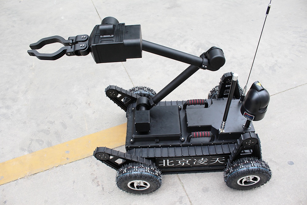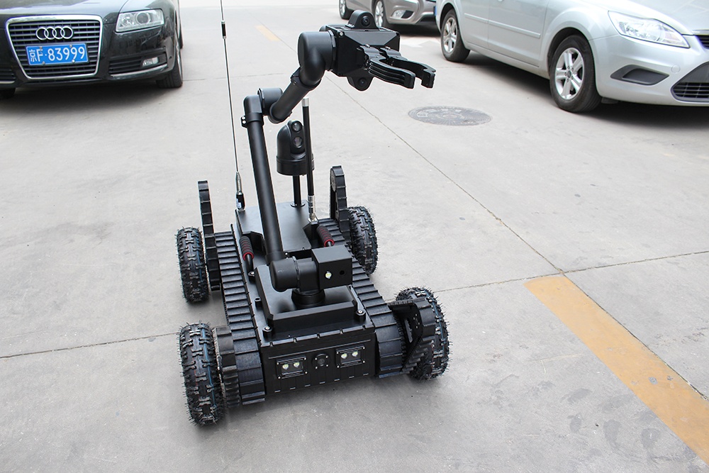 機械臂部分配備爆炸物銷毀器、瞄準器,能現場對爆炸物進行摧毀;