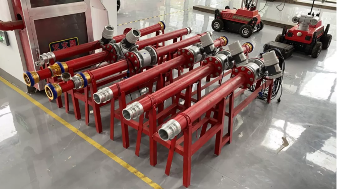 消防機器人流量檢測裝置檢測消防機器人及消防水炮的流量、壓力,能夠實時監測各個支炮管的流量,能夠實時監測多級壓力,泵輸出、流量表、集水器、炮座四處壓力;數據實時顯示、歷史數據可實現查詢。