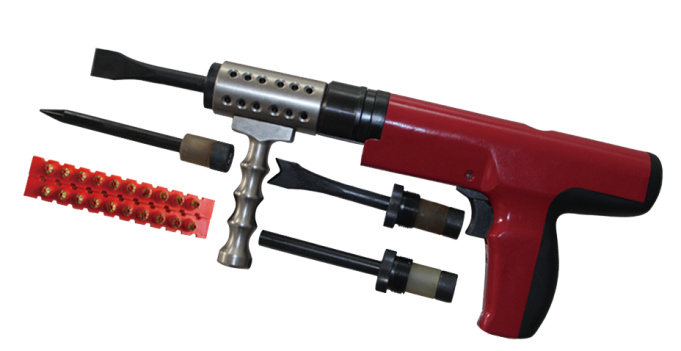 3、射擊時(shí),將毀鎖槍垂直在障礙面上,扣扳機(jī)擊發(fā),如未擊發(fā),需繼續(xù)保持緊壓工作面30秒種,才能拿起毀鎖槍,并重新供彈擊發(fā)。一次擊發(fā)后,用力將槍管拉出到最外端,然后用力再將之推到底,就完成一次退殼供彈過(guò)程,可進(jìn)行下一步擊發(fā)。平鏟用于鏟斷鎖鏈、護(hù)欄、螺栓等,圓柱鏟可用于擊毀鎖芯等。V型鑿可切斷鋼筋,切開(kāi)鐵板等,尖鑿可對(duì)鐵皮打孔等。