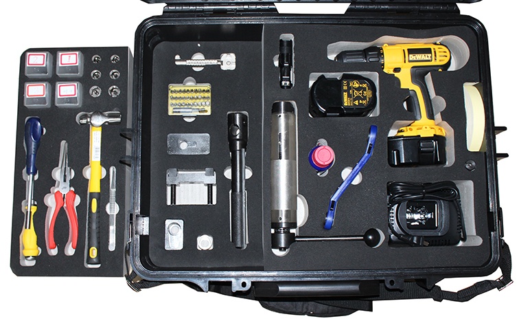 配置:專用電鉆1套、專用鉆頭1套、專用螺絲1套、鎖芯拔除器1個、鎖芯切斷器1個、換向扳手1個、鎖舌轉動器1個、定位器1個、輔助工具1套、