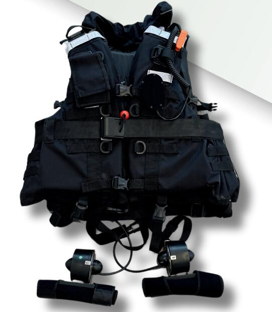 戰(zhàn)術(shù)動力激流救生衣是一種集成浮力設(shè)備和動力裝置的水面救生輔助裝備,能夠為救援者提供額外推進(jìn)力和穩(wěn)定性,輔助救援人員快速抵近、高效救援,保障作業(yè)安全、提高作業(yè)效率。