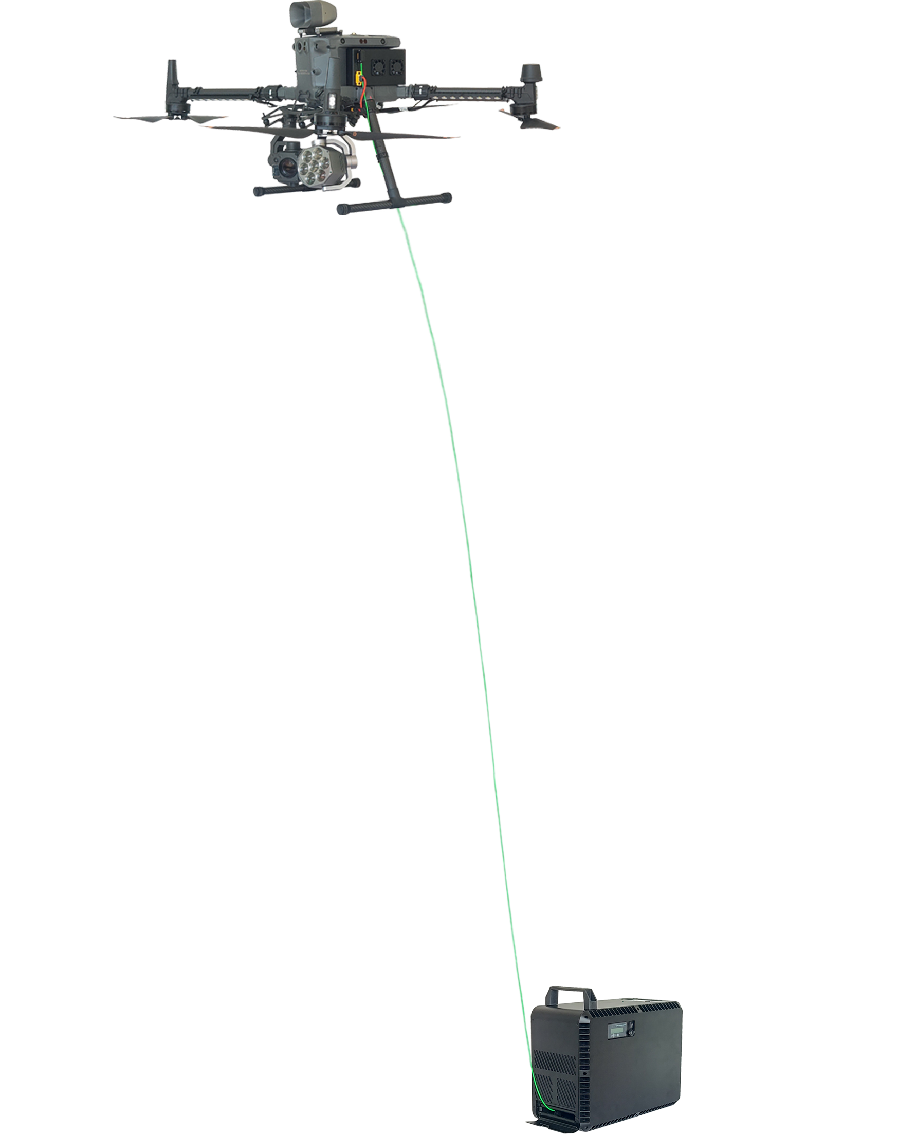 無人機能通過系留供電設備實現空中系留懸停,可持續為無人機供電;
