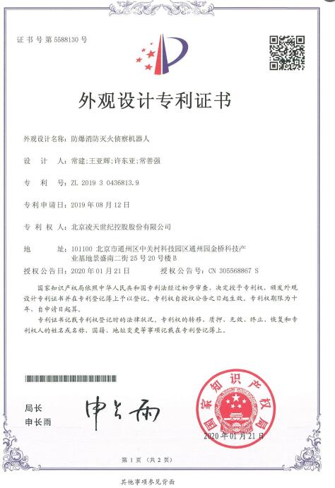 獎項類2019獲得第一屆安全科技進步獎防爆消防滅火偵察機器人