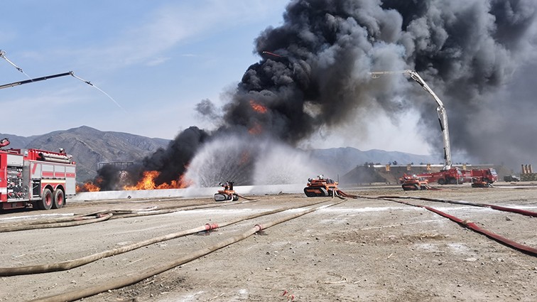 消防炮噴射流量可達120L/s,水射程大于95m,泡沫射程大于90m