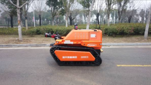 履帶式中型油動力消防滅火機(jī)器人,采用柴油發(fā)動機(jī)為動力,閉式液壓系統(tǒng)驅(qū)動ASV橡膠履帶進(jìn)行高速行走,搭載了每秒150升的大流量消防炮,攜帶多種檢測、監(jiān)控傳感檢測裝置,對火災(zāi)場所實施遠(yuǎn)程實時監(jiān)控,進(jìn)行火災(zāi)撲滅。