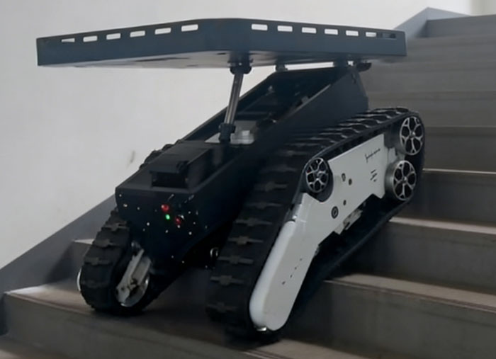 其以 “強適應性 + 高智能” 為核心優勢:底盤采用橡膠橫紋履帶與先進避震系統,搭配輕量化一體壓鑄鋁輪及耐用材質,可實現常規爬坡、極限爬坡,適配多地形穿行,保障復雜環境穩定運行。