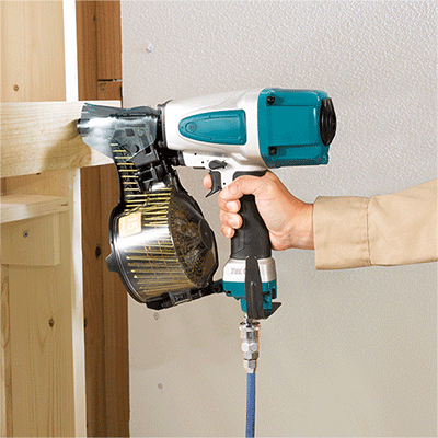 氣動卷釘槍可用于集裝箱托盤、大型木制包裝箱制造柵欄、房屋的木結構連接、木制家具和其他木制結構的連接。可快速釘合,節省人工費用