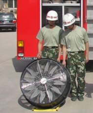 適用于有進風(fēng)和出風(fēng)的火場建筑物,利用排煙機的正壓把新鮮空氣通過建筑物進風(fēng)口吹進建筑物內(nèi),把煙霧從建筑物內(nèi)吹出,清除火場煙霧,使消防員能夠進入建筑物內(nèi)的火場進行滅火。根據(jù)需要可以調(diào)節(jié)風(fēng)扇的出風(fēng)口的角度和風(fēng)扇的轉(zhuǎn)速. 利用高壓水作動力,驅(qū)動水動機運轉(zhuǎn),帶動風(fēng)扇排煙, 具有防爆功能,重量輕,移動方便.