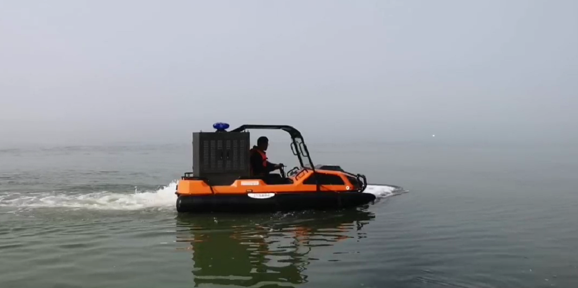 針對水災頻發的地區,水域救援任務必不可少。但往往洪澇災害、城市內澇往往伴隨著惡劣的天氣和崎嶇的地形,沖鋒舟需要多次搭載不同交通工具并數次轉移,水陸兩棲全地形車可以輕松通過水淹、泥濘、沼澤等環境,無需人力搬運,實現陸地駕駛和水中行走自由切換,以最快的時效抵達現場實施救援。