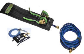 捆綁堵漏袋,尺寸:98*21cm,帶寬25mm,拉伸負載500kg;1個充氣軟管,內徑8mm,藍色;1個單接口壓力開關;1個帶安全壓力表的腳踏高壓氣泵。堵  漏 面 積:19cm寬 ;最大工作壓力:1.5巴;最 大 充 氣 量:8.0升; 重量:2.3公斤。